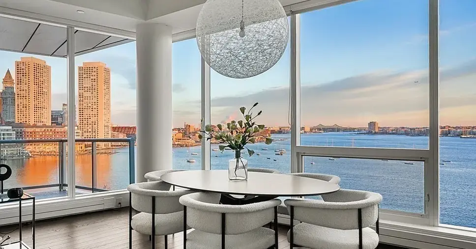 Enjoy the pinnacle of luxury at Twenty Two Liberty in Boston's Seaport. This stunning corner residence boasts two bedrooms plus a large den with breathtaking views of Boston Harbor and the city skyline throughout. Floor-to-ceiling walls of glass frame the brilliant surroundings and flood the home with natural light. At the center, an open-concept living and dining space connects to a spacious private terrace directly overlooking the harbor. Ideal for any occasion, the chef's kitchen is outfitted with top-of-the-line appliances from Sub Zero, Miele, and Wolfe, as well as an adjacent walk-in pantry. The primary suite features stunning water views, a large walk-in closet, and a marble-clad bathroom with a glass-enclosed shower and soaking tub. An en suite guest bedroom and a bonus room that can be used as a well-appointed home office offer ample space for flexible living. Two garage spaces complete this extraordinary residence, set in one of the Seaport's most sought-after